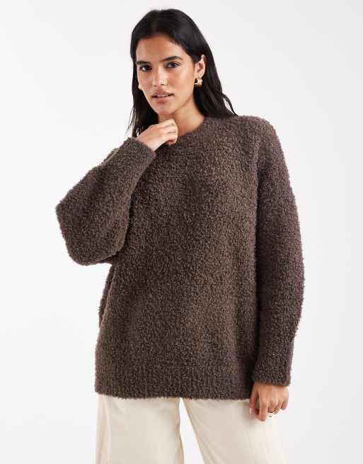 ASOS DESIGN - Pull oversize en maille bouclée à ourlet incurvé - Chocolat