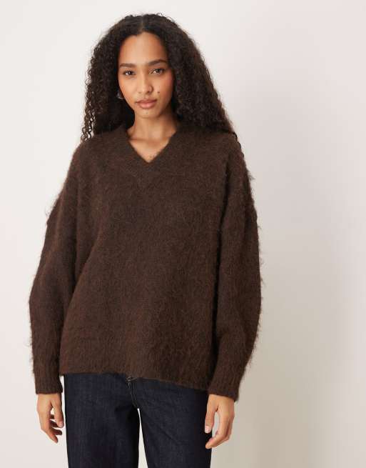ASOS DESIGN - Pull oversize en maille brossée à col V - Chocolat
