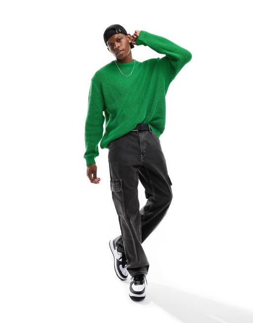 ASOS DESIGN - Pull oversize en maille côtelée style pêcheur - Vert vif