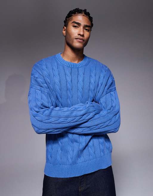 ASOS DESIGN - Pull oversize en maille torsadée - Bleu délavé