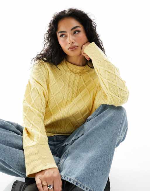 ASOS DESIGN - Pull oversize en maille torsadée de coton - Jaune