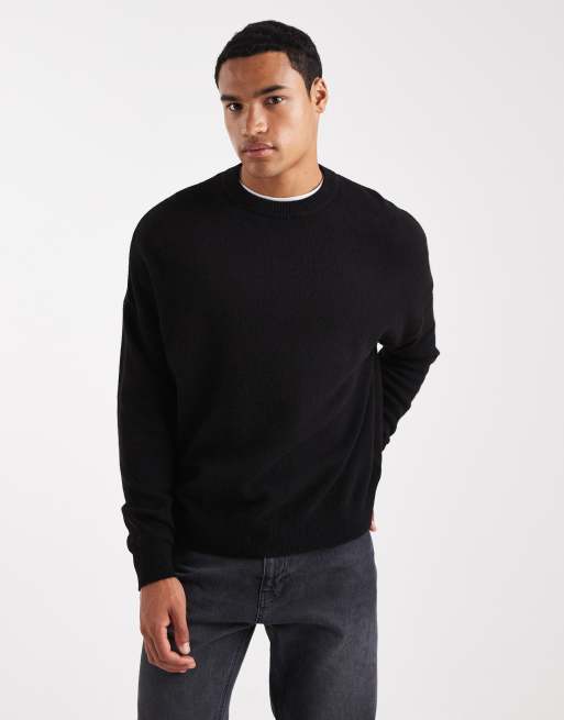 ASOS DESIGN - Pull oversize ras de cou en maille de laine d'agneau - Noir