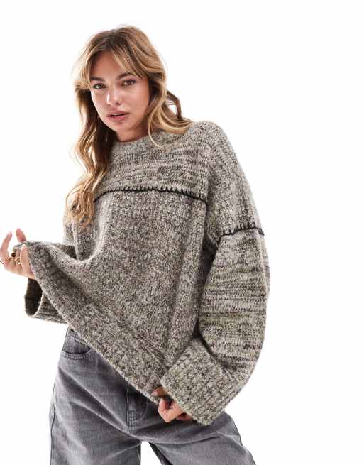 ASOS DESIGN - Pull ras de cou à surpiqûres effet couverture en maille torsadée - Marron