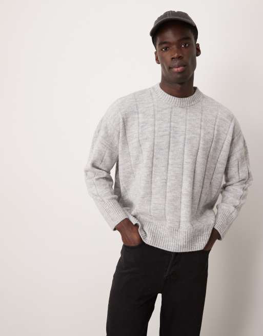 ASOS DESIGN - Pull ras de cou coupe carrée ultra oversize en maille côtelée - Gris chiné