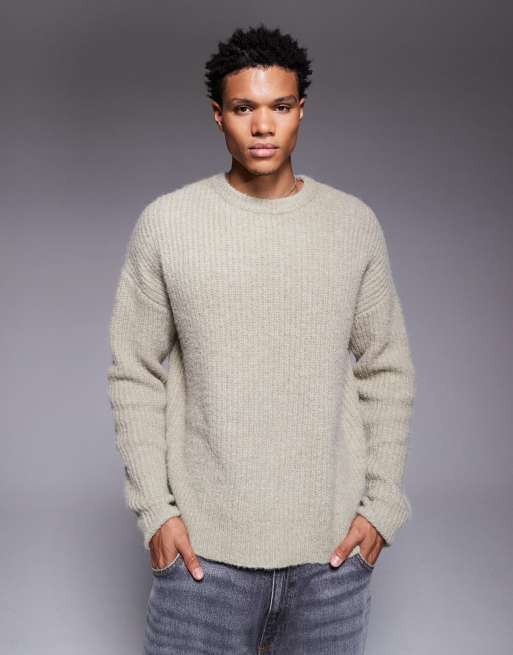 ASOS DESIGN - Pull ras de cou décontracté en maille duveteuse - Vert sauge