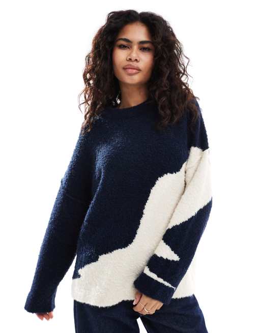 ASOS DESIGN - Pull ras de cou en maille bouclée à motif abstrait