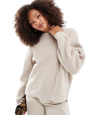 ASOS DESIGN - Pull ras de cou en maille côtelée épaisse - Grège
