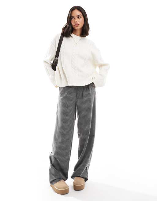 ASOS DESIGN - Pull ras de cou en maille torsadée - Crème