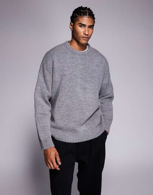 ASOS DESIGN - Pull ras de cou oversize en maille texturée - Gris