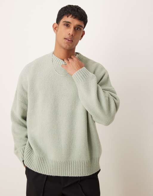 ASOS DESIGN - Pull ras de cou ultra-oversize en maille brossée - Vert sauge