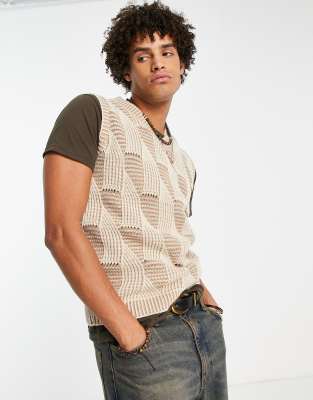 ASOS DESIGN - Pull sans manches en maille texturée - Beige