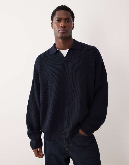 ASOS DESIGN - Pull ultra-oversize coupe carrée en maille à côtes anglaises et col cranté - Bleu marine