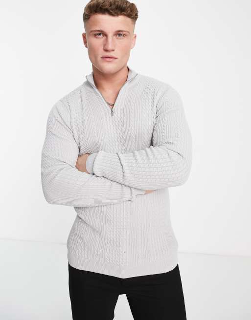 ASOS DESIGN - Pull zippé léger en maille torsadée - Gris