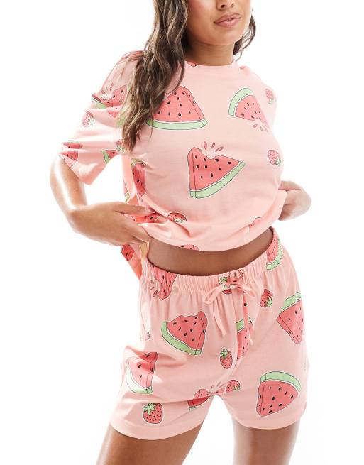 ASOS DESIGN - Pyjama avec short et t-shirt oversize à imprimé pastèque - Rose