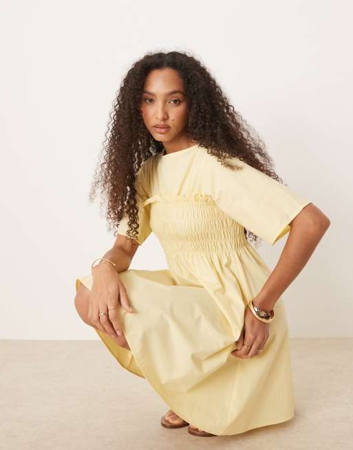 ASOS DESIGN - Roba babydoll trapèze courte à fronces - Beurre