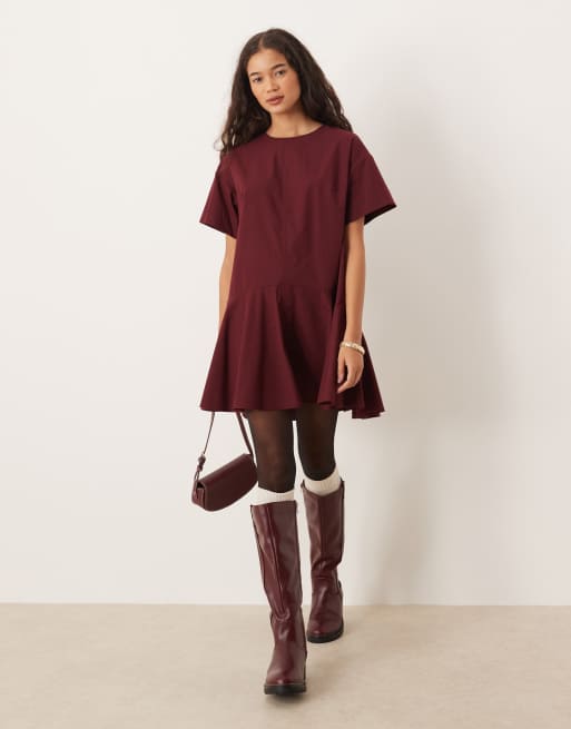 ASOS DESIGN - Robe babydoll courte à manches courtes - Bordeaux