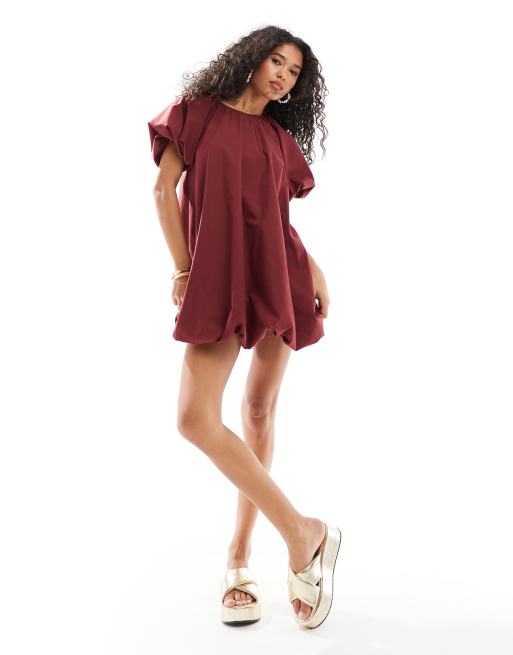 ASOS DESIGN - Robe babydoll courte à ourlet boule - Bordeaux