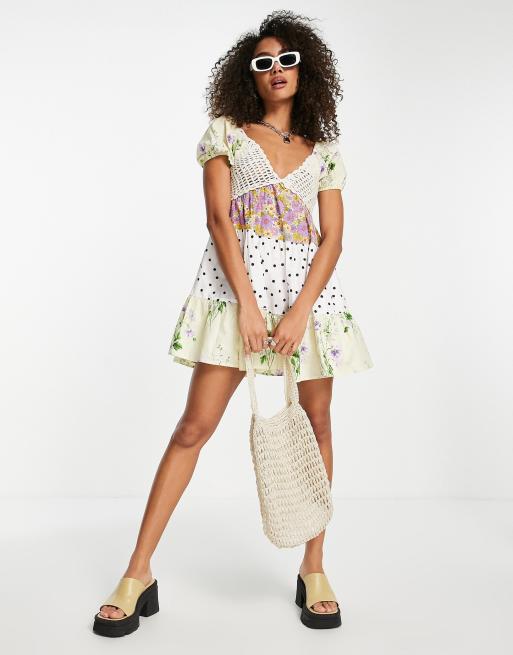 ASOS DESIGN - Robe babydoll courte au crochet à volants et imprimés variés
