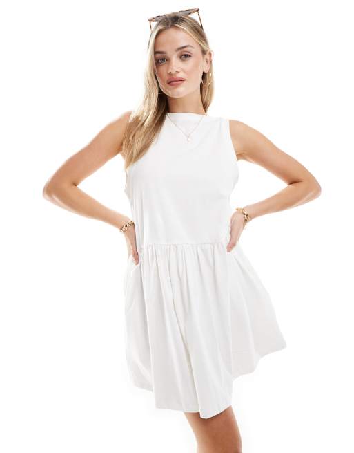 ASOS DESIGN - Robe babydoll courte sans manches avec dos échancré - Blanc