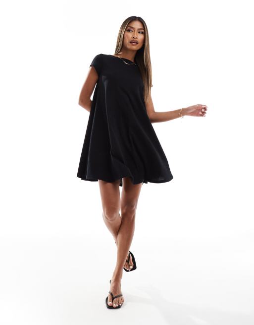 ASOS DESIGN - Robe babydoll courte texturée avec nœud léopard dans le dos - Noir
