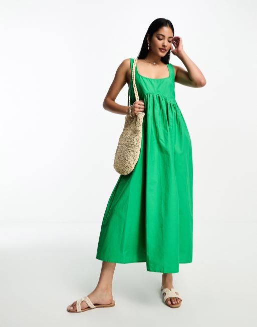 ASOS DESIGN - Robe babydoll mi-longue à encolure carrée - Vert vif