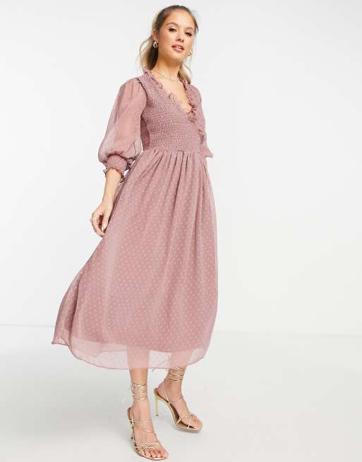 ASOS DESIGN - Robe babydoll mi-longue avec bords des manches froncés - Vison