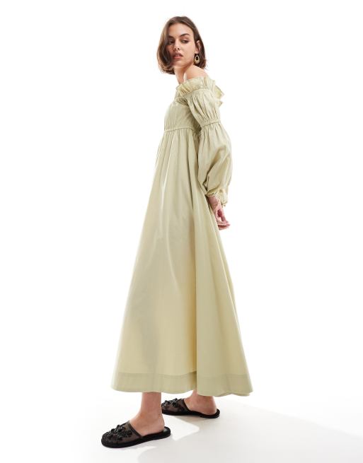 ASOS DESIGN - Robe babydoll mi-longue en popeline de coton avec fronces - Olive