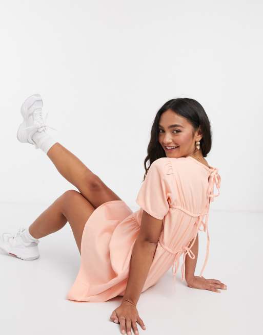 ASOS DESIGN - Robe babydoll en jean souple - Corail