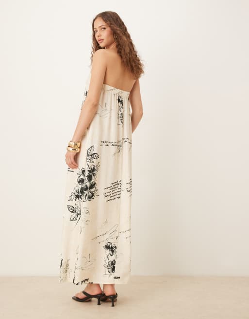 ASOS DESIGN - Robe bandeau longue en cupro à imprimé communication - Noir et blanc