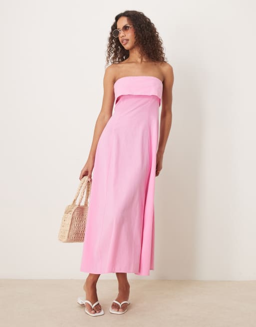ASOS DESIGN - Robe bandeau mi-longue à pli - Rose