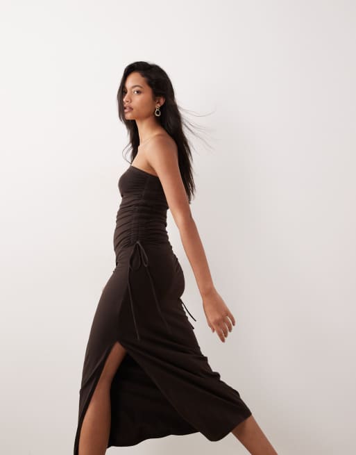 ASOS DESIGN - Robe bandeau mi-longue avec fronces sur le côté - Chocolat
