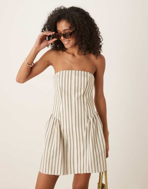 ASOS DESIGN - Robe bustier courte et structurée en tissu contrecollé à rayures - Naturel
