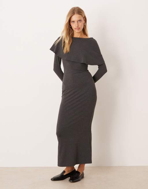 ASOS DESIGN - Robe cape longue avec foulard - Gris chiné