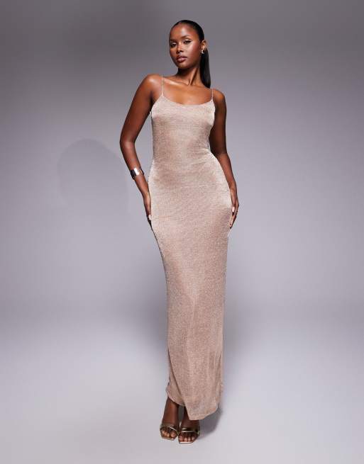ASOS DESIGN - Robe caraco longue près du corps en maille pailletée - Or rose