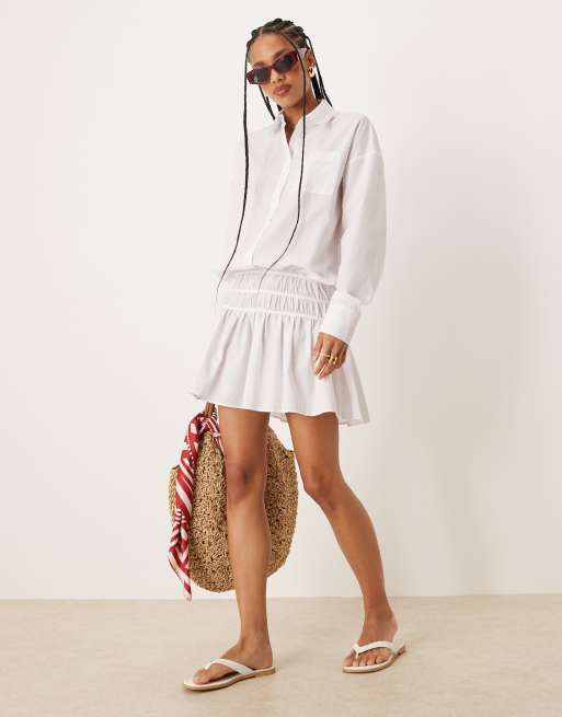 ASOS DESIGN - Robe chemise blousante courte à taille basse - Blanc