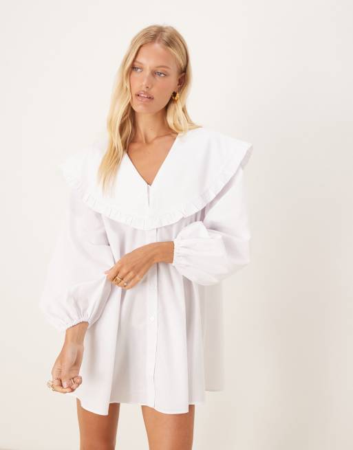 ASOS DESIGN - Robe chemise courte à col oversize - Blanc