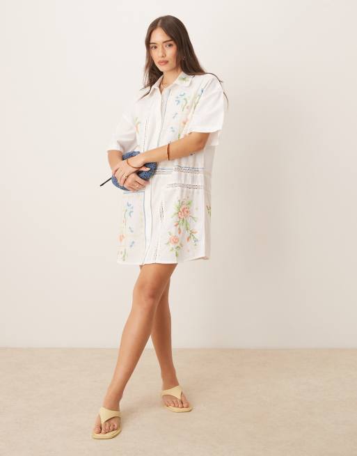 ASOS DESIGN - Robe chemise courte brodée - Crème