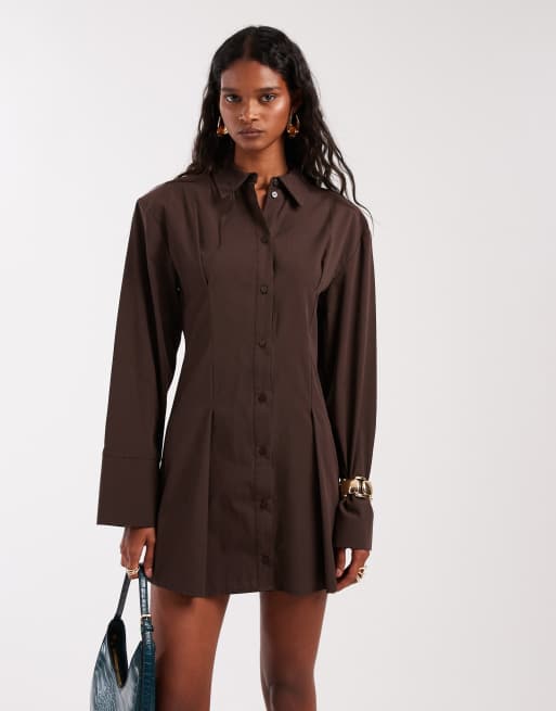 ASOS DESIGN - Robe chemise courte cintrée à épaulettes - Chocolat