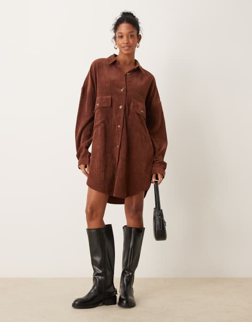 ASOS DESIGN - Robe chemise oversize en velours côtelé avec poches - Chocolat