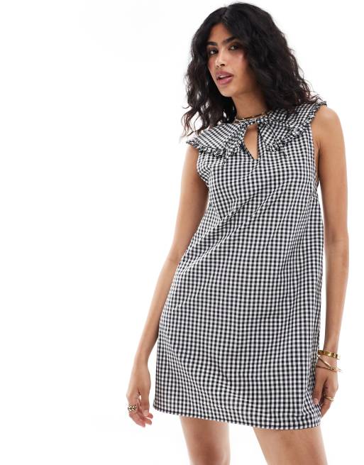 ASOS DESIGN - Robe courte à carreaux vichy avec col pâquerette - Noir et blanc