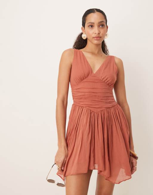 ASOS DESIGN - Robe courte à col V et ourlet mouchoir - Terracotta