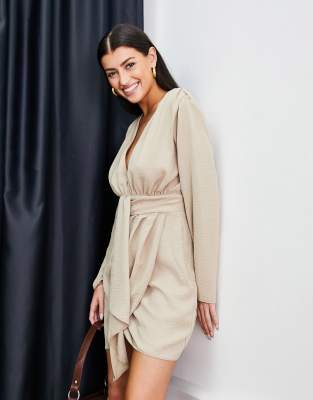 ASOS DESIGN - Robe courte à décolleté plongeant avec jupe portefeuille drapée - Fauve