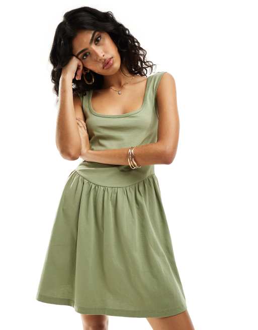 ASOS DESIGN - Robe courte à encolure dégagée - Kaki