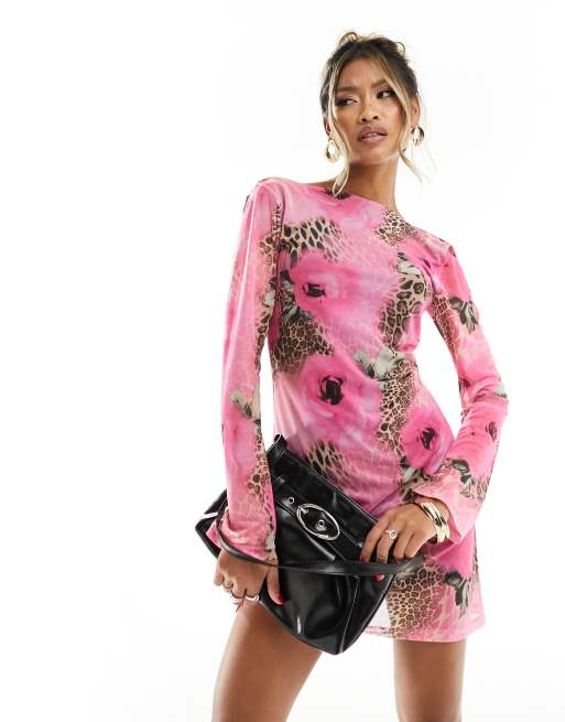 ASOS DESIGN - Robe courte à manches anges et dos échancré - Imprimé léopard à fleurs