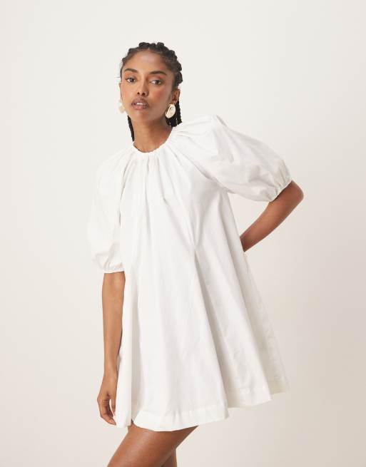 ASOS DESIGN - Robe courte à manches bouffantes en popeline de coton - Blanc