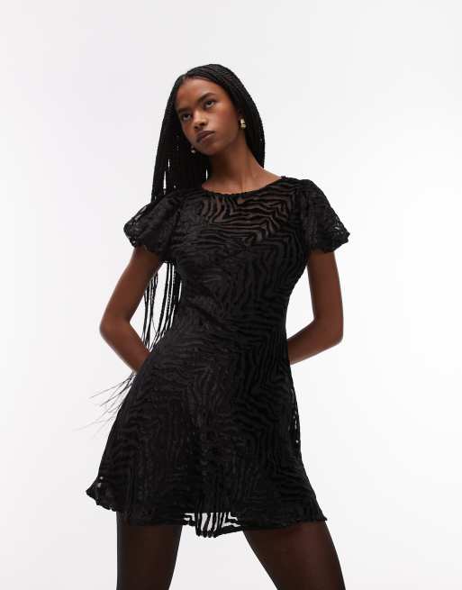ASOS DESIGN - Robe courte à manches bouffantes en velours dévoré à motif animal - Noir