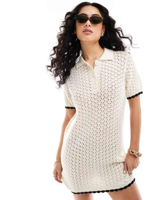 ASOS DESIGN- Robe courte à manches courtes en maille avec surpiqûres et ourlet à liseré