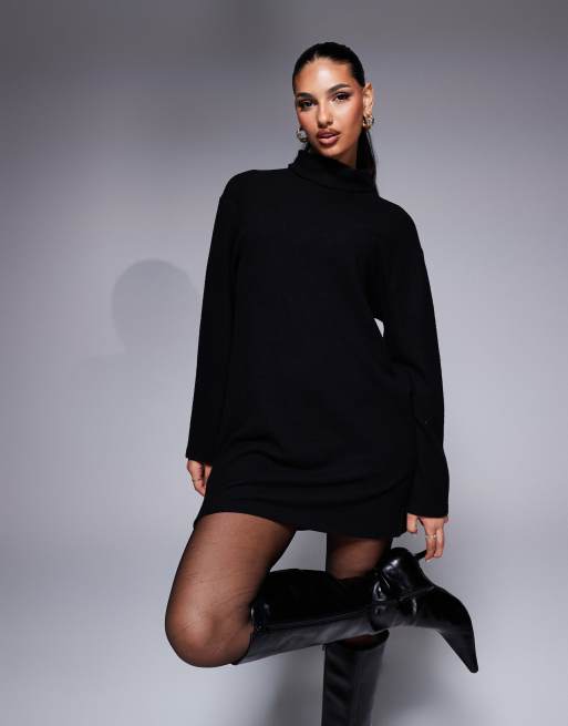 ASOS DESIGN - Robe courte ample ultra douce à col roulé - Noir