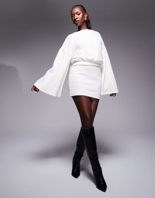 ASOS DESIGN - Robe courte blouson ultra douce avec manches longues et larges - Blanc hiver