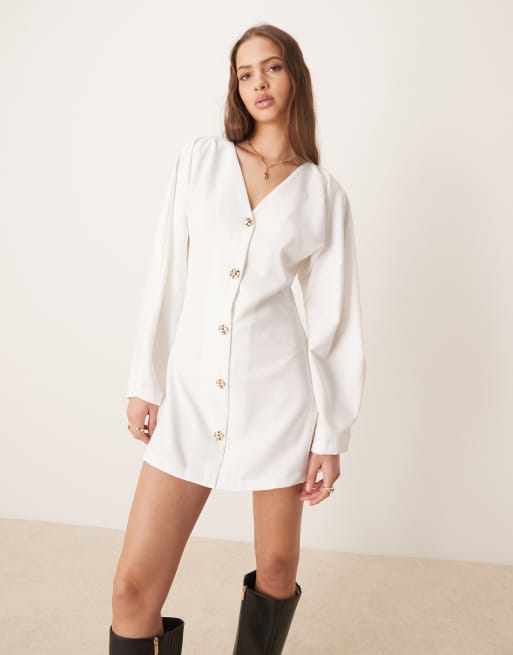 ASOS DESIGN - Robe courte boutonnée à manches larges et col V - Crème
